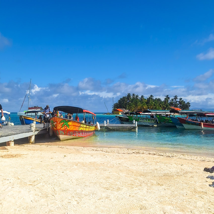 Una vez en el mar, comenzará el recorrido privado por diferentes islas del archipiélago de San Blas.